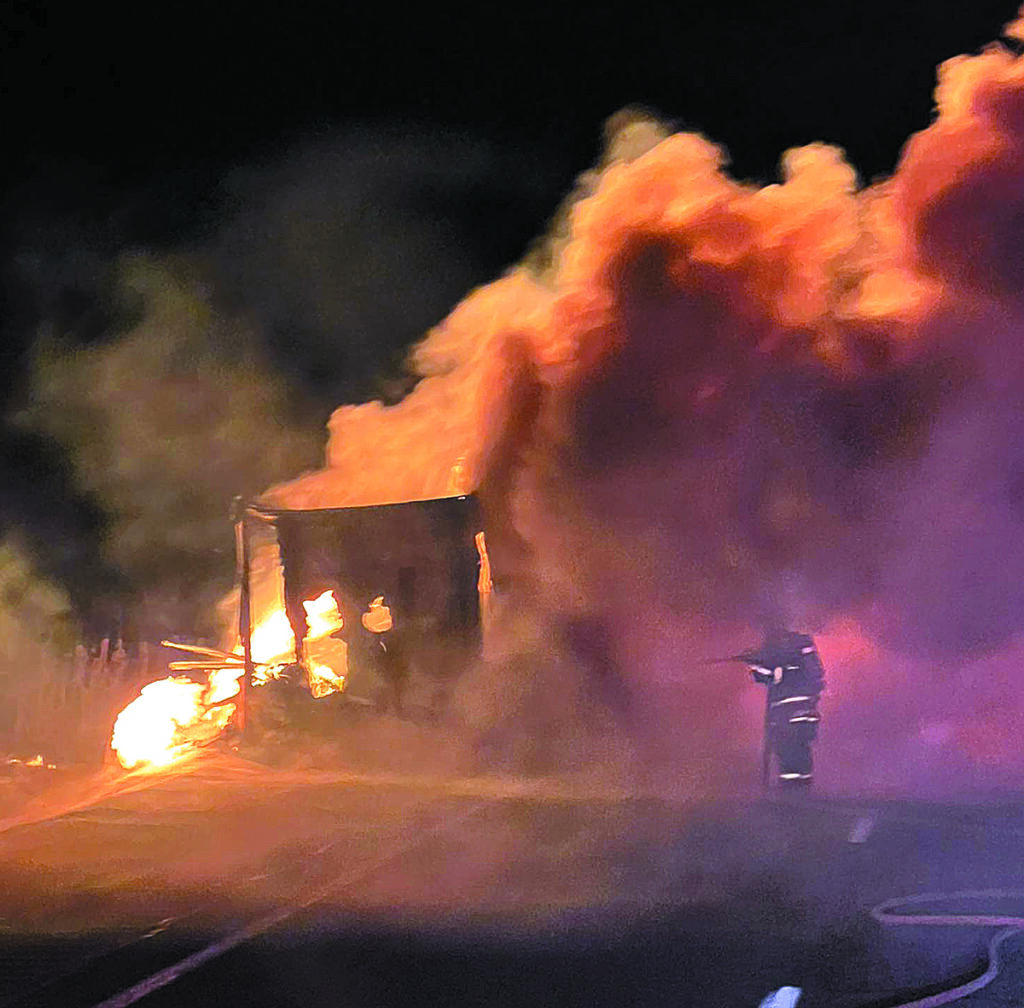 A semi tractor trailer caught on fire on souhbound lane of Interstate 65 at the 47.5 mile marker between Uniontown and Seymour early last Wednesday morning, Jan. 14.