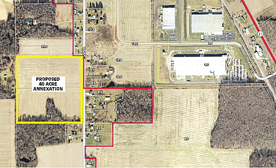The owner of the parcel, Greg & Angela Hoevener of rural Vernon Township, have asked to town to annex the north 40 acres of the parcel to provide water and sewer.